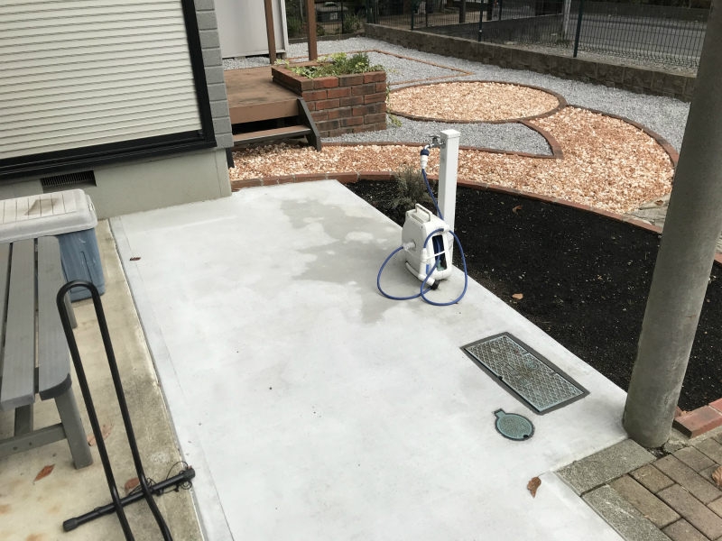 立水栓の周りですが、自転車を置く場所が狭かったので、コンクリートで拡張しています。