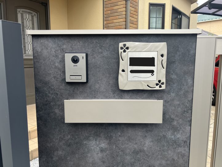 表札はご夫婦でシミュレーションをしながら気に入ったデザインのものをそのまま取り付けさせていただきました。