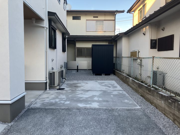 奥に長い敷地があるとゲスト用も考慮して2台分のコンクリートを施工することもありますが、そうなると生活していて必要になる外道具の置き場がなくなることが間々あります。