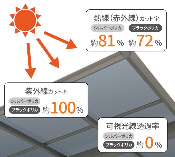 また、ブラックポリカよりも熱線(紫外線)カット率が高く、真夏でも快適なカースペースを実現してくれそうです。
