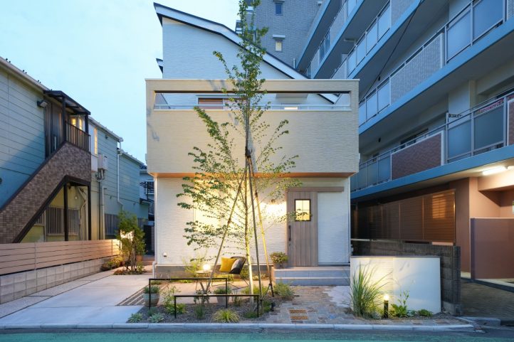 道路・隣地とも距離が近いため、目隠しフェンスや植栽が活躍します。